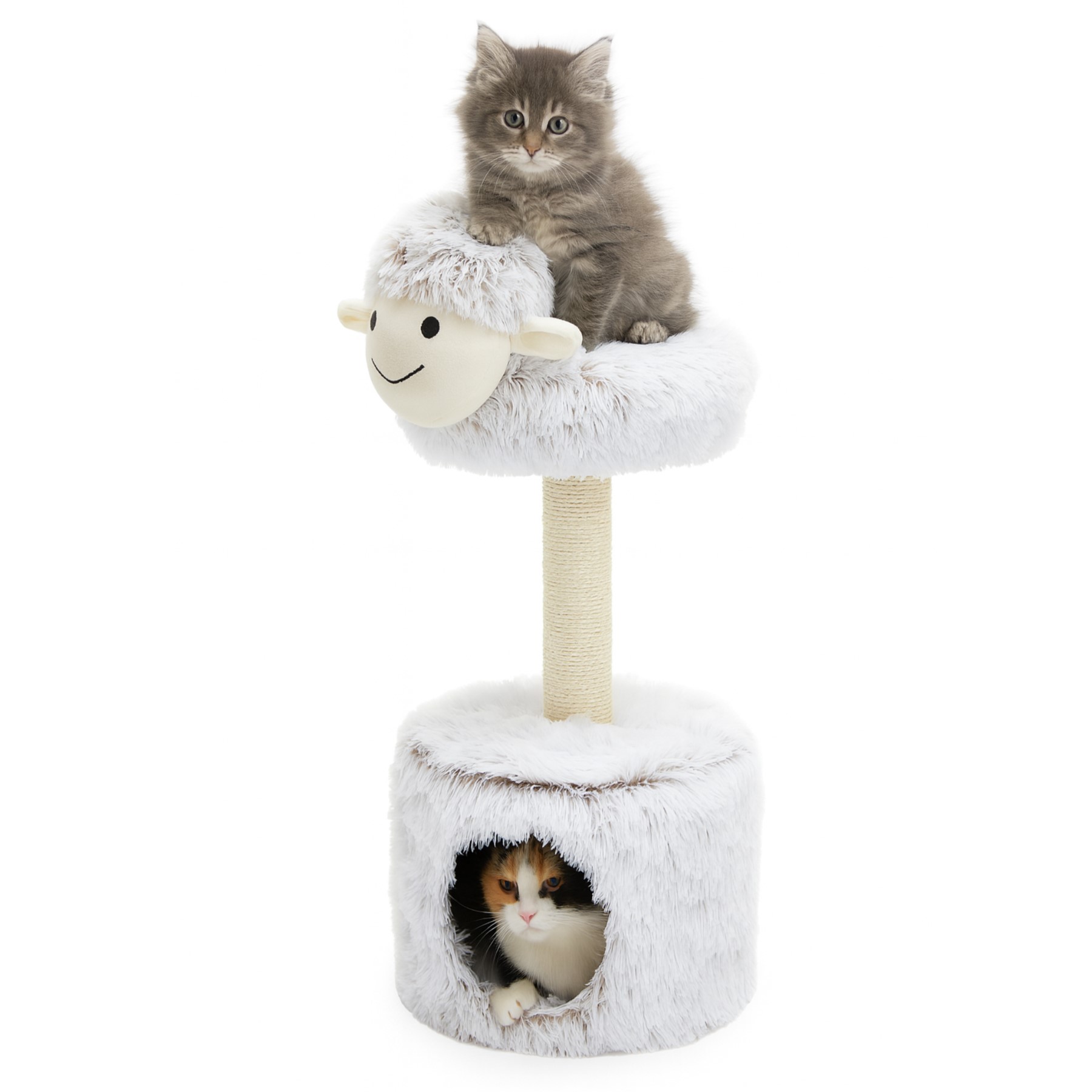 Nobleza Fluffy kattenmeubel met huisje – Wit – 67 cm